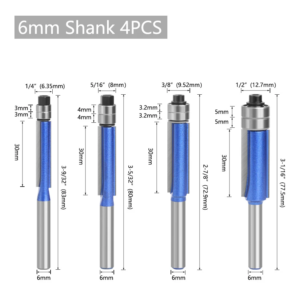 - 4 × Flush Trim Router Bits